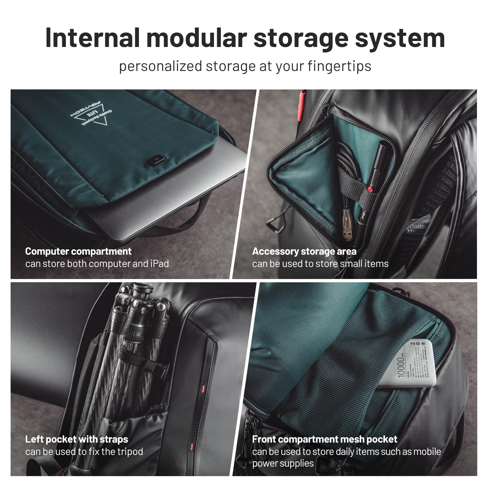 - Core Advantage: High-performance PU coating, which is scratch-resistant, dirt-resistant, rain-proof and splash-proof; with the optimization of materials and structure, the weight of the whole package is controlled at 1.65kg (excluding partitions), making it easy to travel;Large front opening and internal modular partition for more efficient storage;Quick access zipper